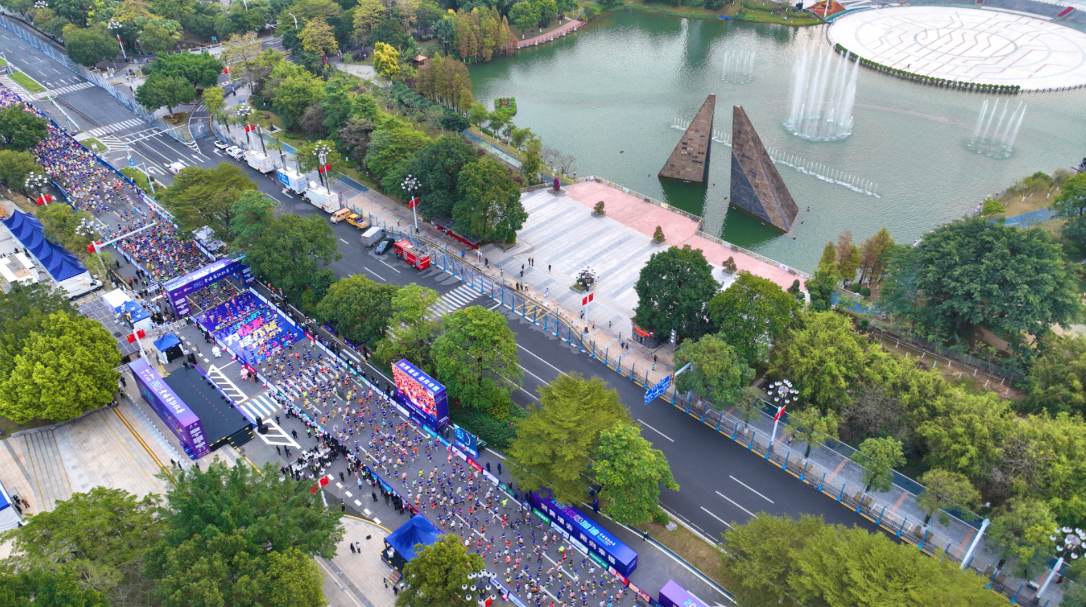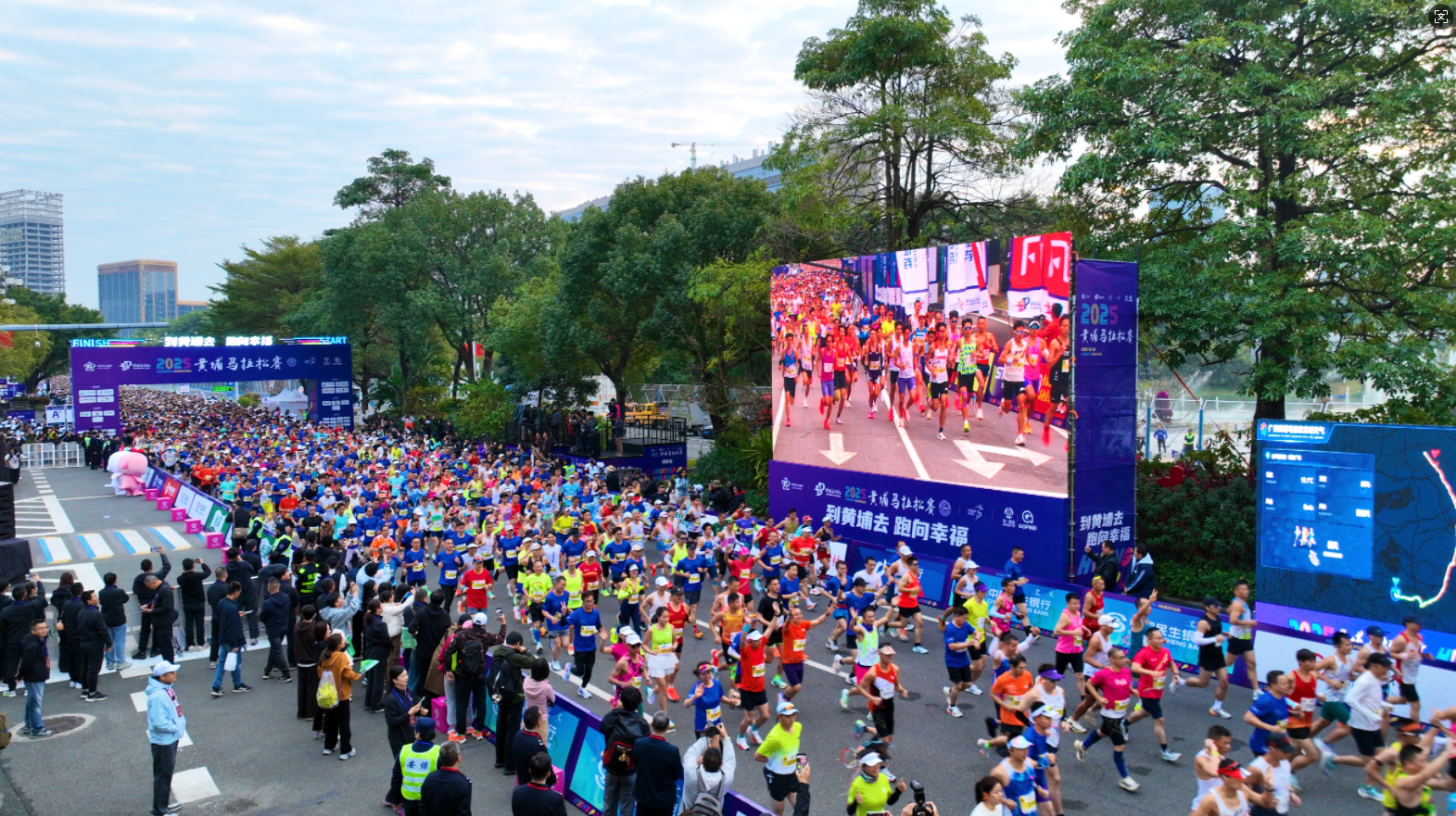 中国工程院院士、水产动物营养与饲料专家麦康森等嘉宾共同鸣枪发令。两万名跑者如潮水般涌过起点线,共同踏上这条被誉为“时空走廊”的特色赛道,用脚步丈量黄埔区高质量发展的壮丽图景。